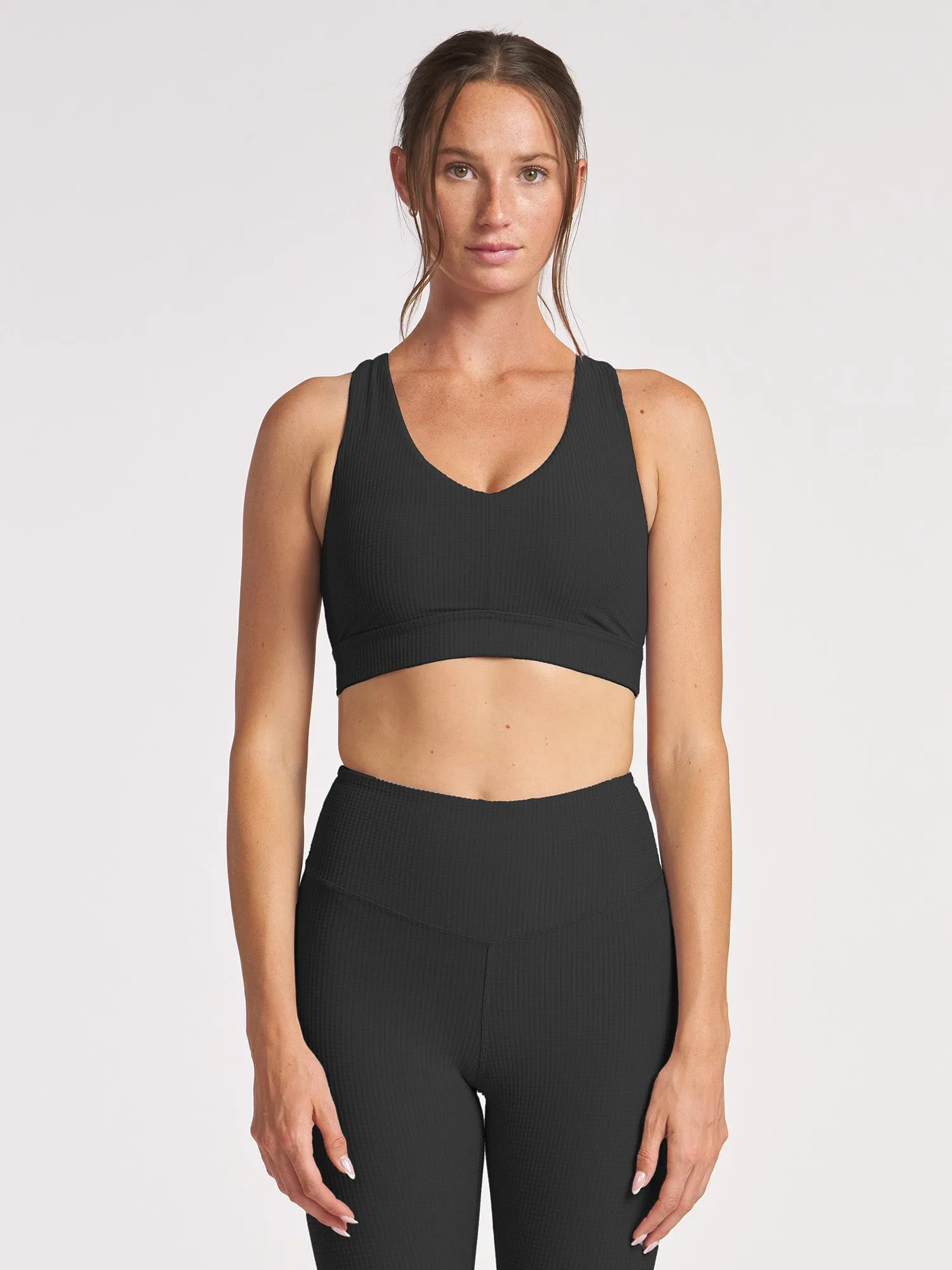 Our Grid Cross Back Bra features a V-neck criss cross back bra with removable cups for adjustable coverage. Made in our new cooling and UPF 30 grid sculpt fabric perfect for medium impact workouts. This sports bra pairs perfectly with our .